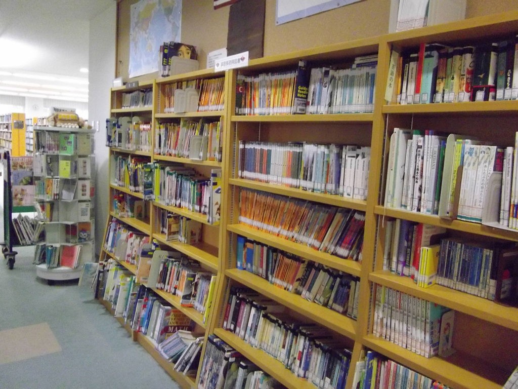 5万5千冊図書と1万8千冊の消耗図書が並ぶ知の宝庫。中学生向きの赤ラベルと高校生向きの靑ラベルに分かれています。