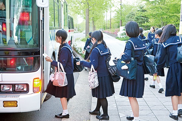 スクールバスはGPS搭載。走行している場所をスマートフォンで確認できます。